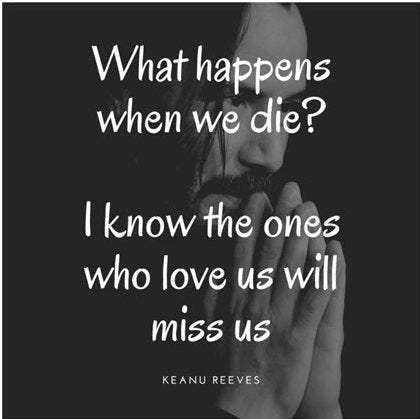 Death of course represents the ultimate form of loss, of losing that to which we are most attached, so I think this Keanu Reeves quote is quite poignant: